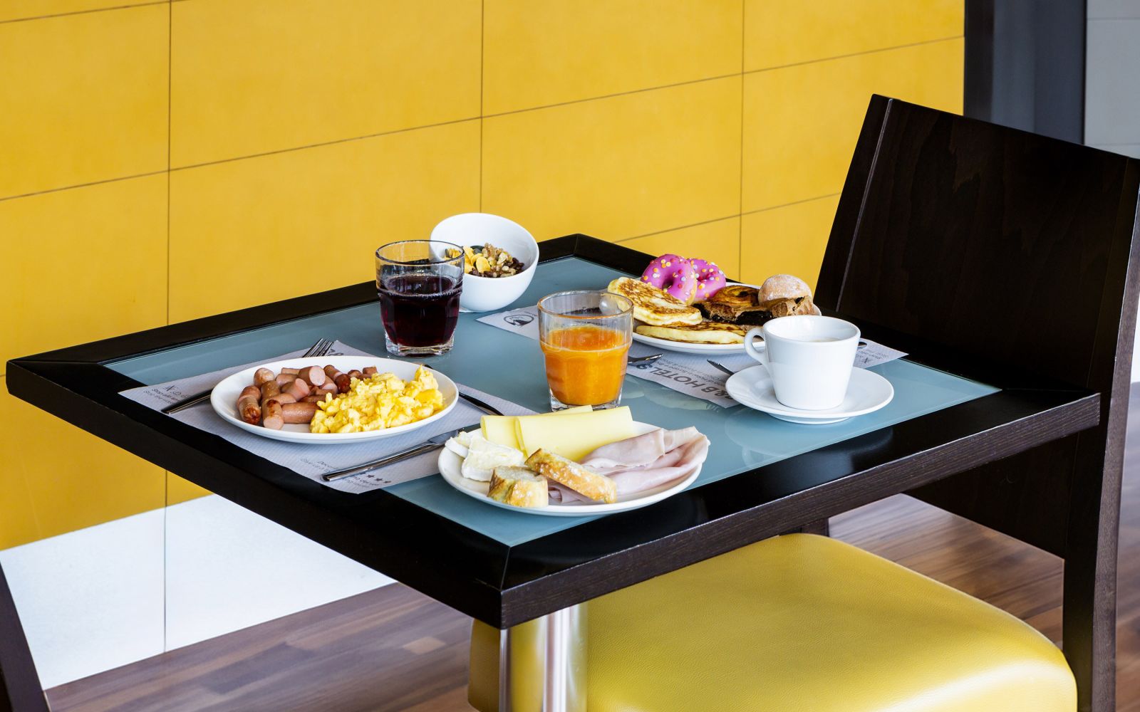 Um nicht auf das Vergnügen eines süßen Erwachens zu verzichten, kannst du jeden Morgen im Frühstücksraum ein reichhaltiges, abwechslungsreiches und leckeres Buffet mit hochwertigen Produkten genießen. Das Frühstück umfasst zahlreiche Optionen für Liebhaber von Süßem und Herzhaftem wie Croissants, Brot, Marmelade und Zwieback, Donuts, Kuchen, Muffins, Müsli, Joghurt, Rührei, Würstchen, Käse, Erfrischungsgetränke, Kaffee und vieles mehr... auch mit biologischen und glutenfreien Optionen!