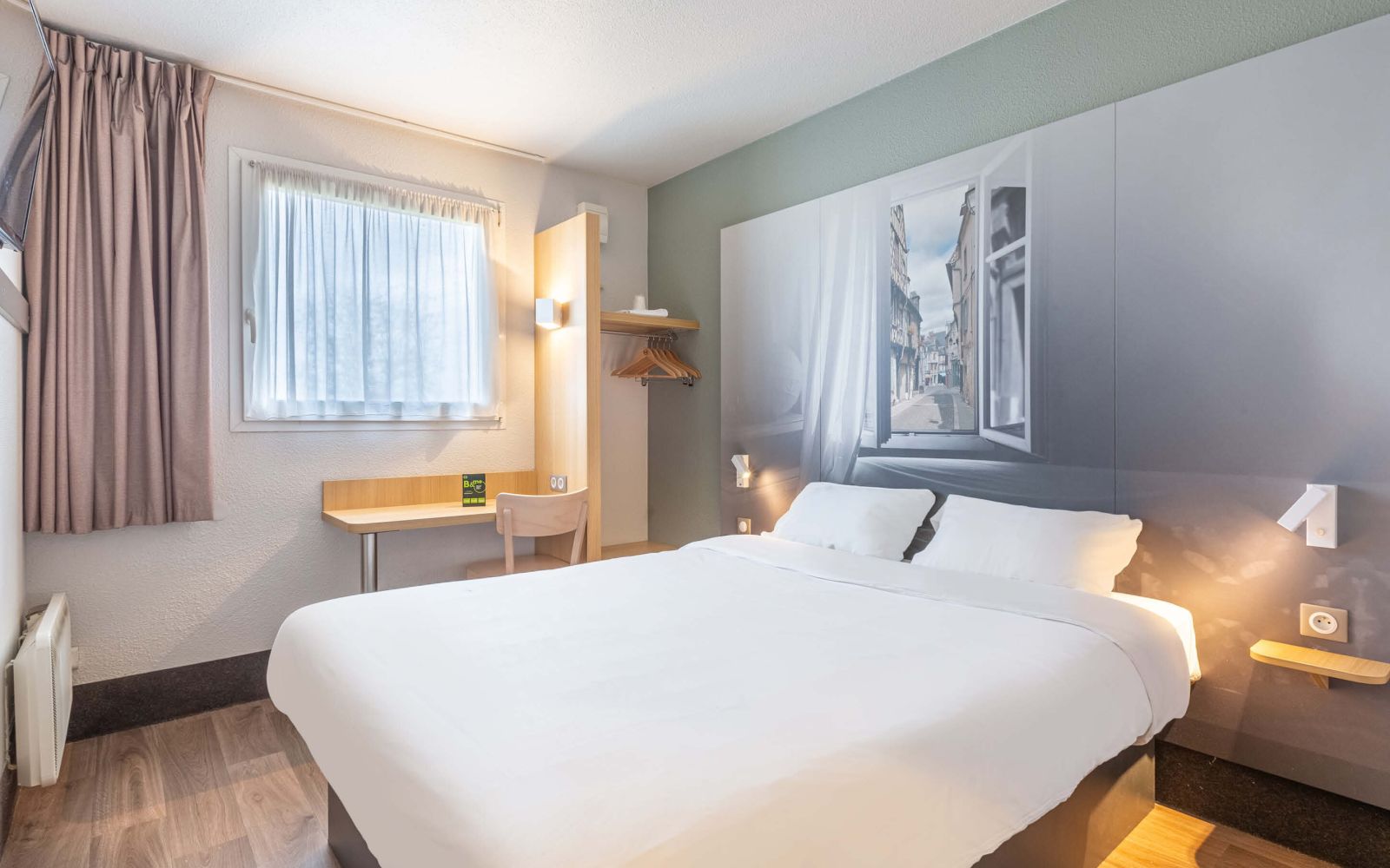 hôtel d étape très pratique et très bon rapport qualité prix, un peu de bruit sur la porte coupe feu du couloir à côté de notre chambre, il doit être possible de la régler pour limiter ce bruit désagréable