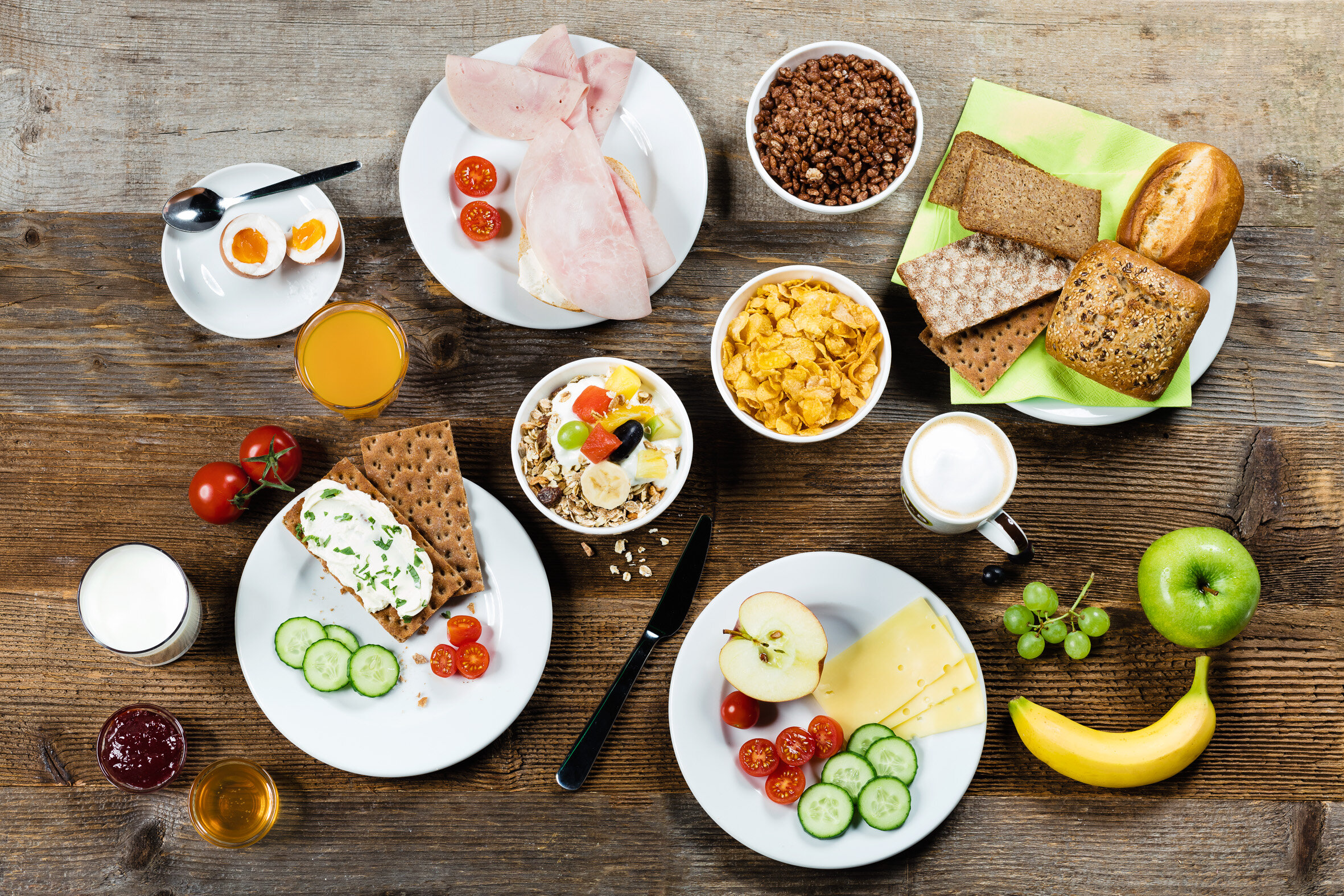 Wir sind stolz auf unser vielseitiges Buffet, mit dem wir einen ökologischen Ansatz verfolgen. Unser abwechslungsreiches Frühstücksbuffet bietet eine große Auswahl, darunter verschiedene Brotsorten, Porridge, Joghurt, leckerer Kaffee, diverse Milchalternativen und vieles mehr.