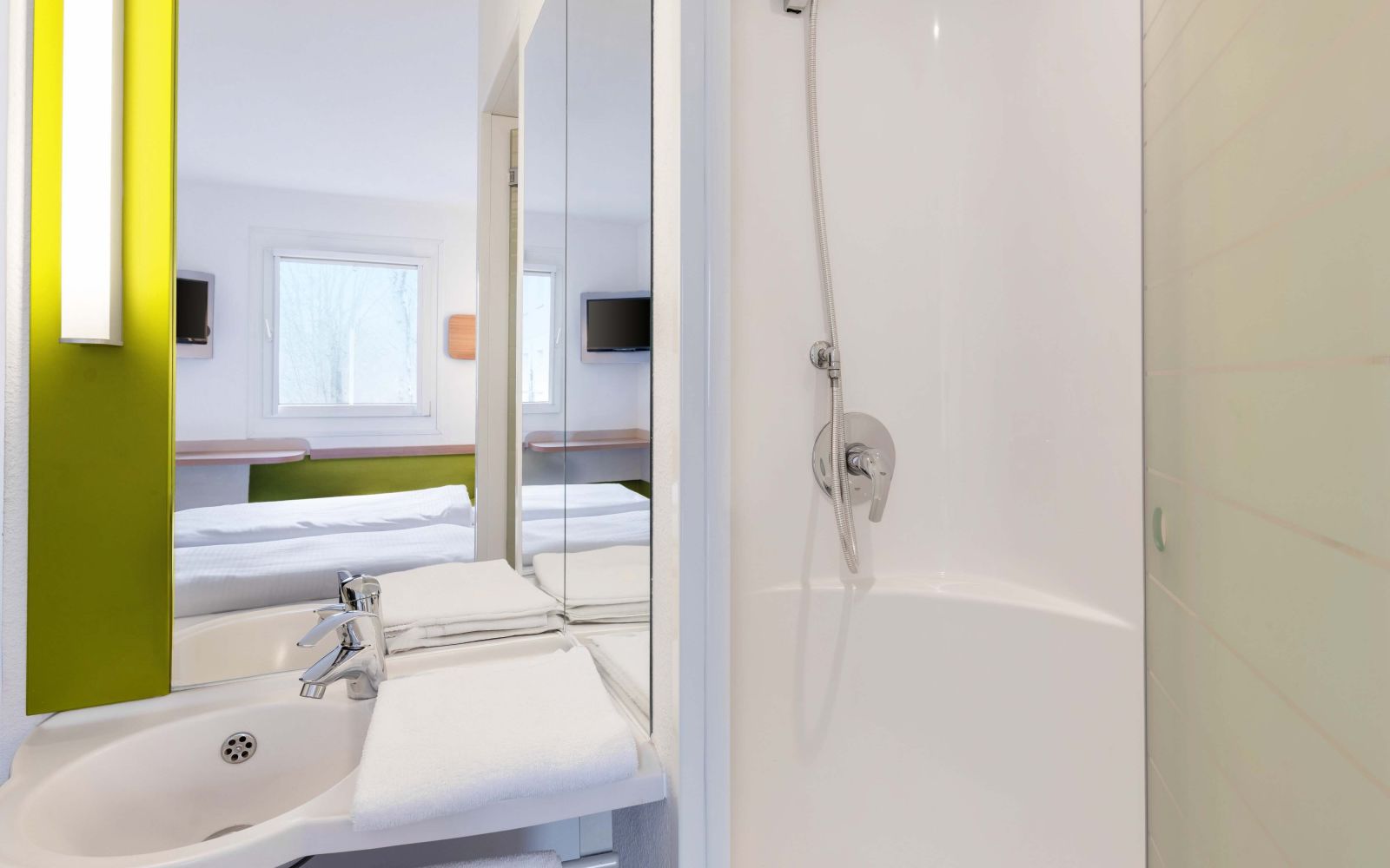Ich habe zwei Nächte im B&B Hotel im Rahmen einer Geschäftsreise verbracht. Bett bequem, Bad sauber, Frühstücksbüffet super lecker und mit ausreichend Auswahl. Mein Zimmer war ziemlich klein, hat mich persönlich nicht gestört, da ich wirklich nur zum Schlafen im Hotel war und sonst on Tour. Einziger Minuspunkt: Es war ziemlich hellhörig, das mag aber auch der Tatsache geschuldet sein, dass mein Zimmer im ersten dicht am zentralen Treppenhaus lag. Der Online-Check vorab war super komfortabel, so konnte ich bei Ankunft direkt durchmaschieren aufs Zimmer mit dem Code. Rechnung gab es dann auch direkt per Mail, sodass der Checkout auch in einem Wimpernschlag erledigt war.