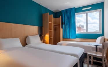 Unser B&B HOTEL Amiens Centre Cathédrale, klassifiziert mit zwei Sternen und durchgehend geöffnet, liegt ideal im Stadtzentrum. Leicht erreichbar vom Boulevard d'Alsace Lorraine, ist es nur wenige Minuten vom Bahnhof, der Kathedrale Notre-Dame und dem Belfried von Amiens entfernt. Mit gebührenpflichtigen Parkplätzen auf einem öffentlichen Parkplatz ist es die ideale Unterkunft für Urlauber, die tagsüber oder abends durch die Gassen schlendern, das Erbe der Stadt entdecken und die Atmosphäre auf den Terrassen der Bars und Restaurants genießen möchten.