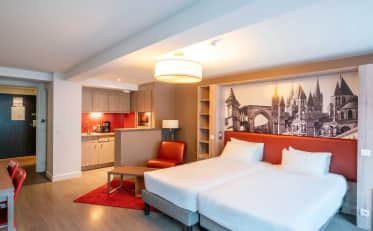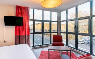 Unabhängig von Ihrem Budget empfangen wir Sie in der Nähe des historischen Zentrums, wo Sie zahlreiche Restaurants in der Nähe des Schlosses von Caen und seines Place des Quatrans finden. Für all Ihre Geschäftsreisen wählen Sie ein Hotel in Caen in der Nähe von Geschäftsvierteln oder im Norden der Agglomeration.
