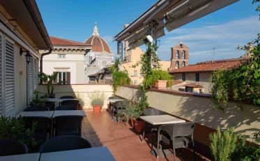 Ein Besuch der Kathedrale Santa Maria del Fiore, besser bekannt als der Dom von Florenz, ist ein absolutes Muss. Die beeindruckende Kuppel von Brunelleschi dominiert die Skyline der Stadt und ist ein Meisterwerk der Renaissance-Architektur. Vom B&B HOTEL Firenze-Laurus al Duomo hast du sogar einen direkten Blick auf dieses architektonische Wunder. Wir empfehlen dir, die Stufen zur Spitze zu erklimmen – der Panoramablick über die roten Dächer von Florenz ist die Anstrengung wert und eine unvergessliche Erinnerung.