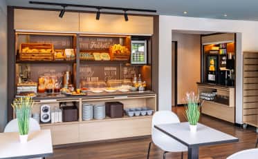 Wir empfehlen unseren Gästen unser beliebtes, reichhaltiges B&B HOTELS Frühstücksbuffet. Für nur 8,50 € (pro Erw./Nacht, für Kinder bis 12 Jahre 3 €) bleiben keine Wünsche mehr offen. Buche dein Frühstück bequem online dazu!