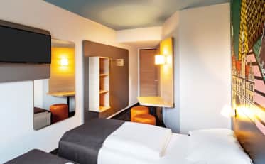 Reist du allein, mit deinem Partner, mit Freunden oder mit der ganzen Familie? Die B&B Hotels bieten dir verschiedene Zimmerkategorien je nach Platzbedarf und gewünschten Komfort. Unsere Arten von Hotelzimmern passen sich an deine Wünsche an.