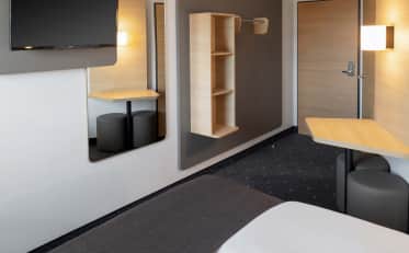 Gäste können in folgenden Standard-Zimmerkategorien übernachten: Zimmer mit französischem Bett für ein oder zwei Personen, Zwei- und Dreibettzimmer oder Familienzimmer gehört in all unseren modernen Hotelzimmern zum Standard. Auch in unseren B&B HOTELS in Kiel kannst du kostenlosen WLAN Programm genießen. Zur Ausstattung aller modernen Zimmer gehören schallisolierte & große Fenster, Schreibtisch, Garderobenschrank und Flachbildfernseher. Die Badezimmer verfügt über Dusche, WC, Föhn und Waschbecken. Zudem sind alle B&B HOTELS haustierfreundlich. Gegen eine zusätzliche Gebühr ist auch dein Haustier herzlich willkommen.