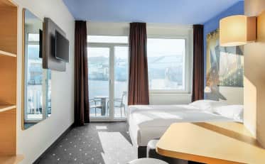 In unmittelbarer Nähe zum Wasser befindet sich unser B&B HOTEL Kiel-City, das auch durch seine direkte Nähe zur Innenstadt Kiels überzeugt. Hier findest du viele tolle Restaurants und können sich direkt in die moderne Hafenstadt begeben und finden in Kiel tatsächlich beides: Abenteuer & Entspannung. Gäste in unseren B&B HOTELS in Kiel können sich auf einen ausgezeichneten Service verlassen mit Service-Mitarbeitern an unserer Rezeption, die dir gerne Hilfe anbieten und deine Fragen beantworten. Auf allen unseren Zimmern in der Stadt Kiel findest du gratis WLAN, welches für all unsere Gäste verfügbar ist, moderne Zimmer und schallisolierte Fenster.