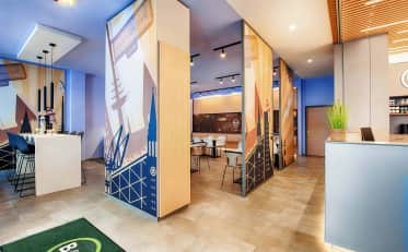 Aufgewacht? Dann probiere direkt unser beliebtes B&B HOTELS Frühstücksbuffet. Ausgewählte Snacks und Getränke findest du zusätzlich rund um die Uhr in den Automaten in der Hotellobby.