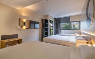 Unser B&B HOTEL La Rochelle Centre Les Minimes ist dem Meer zugewandt. Nur wenige Minuten vom Jachthafen und kaum fünf Minuten vom Strand, der Plage des Minimes genannt wird, entfernt, können Sie bei Ihrer zukünftigen Buchung in unserem Hotel die maritime Atmosphäre der Stadt genießen. Schlendern Sie entlang der Kais und machen Sie sich auf den Weg zu den Inseln, die am Horizont zu sehen sind. In der Nähe unserer Einrichtung befinden sich auch die Universität von La Rochelle und der Pôle Voile.