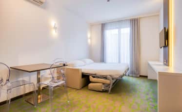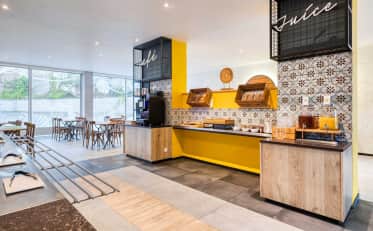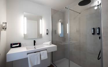 Bei B&B HOTELS profitieren Sie von allen Dienstleistungen, die Sie für einen angenehmen Aufenthalt benötigen: komfortable Zimmer (Einzel-, Doppel-, Dreibett- oder Familienzimmer), kostenlose und unbegrenzte WLAN-Verbindung, hochwertige Bettwäsche, eigenes Bad und Flachbildfernseher. Alles, damit Sie sich wie zu Hause fühlen! Verpassen Sie nicht das reichhaltige Frühstücksbuffet mit süßen und herzhaften Speisen à la carte, um in den Tag zu starten!