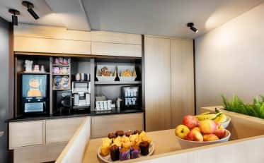 Probiere unser beliebtes B&B HOTELS Frühstücksbuffet. Für nur kleines Geld bleiben keine Wünsche mehr offen. Ausgewählte Snacks und Getränke findest du zusätzlich rund um die Uhr in den Automaten in der Hotellobby.