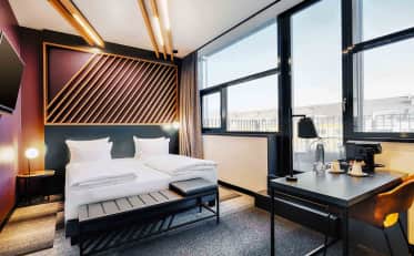 Falls du in eine Unterkunft in der Nähe des modernen Münchner Flughafens suchst, bietet sich unser B&B HOTEL München Airport durch seine zentrale Lage an. Eine Anbindung an die Autobahn A92 (Hotel München Airport), sowie kostenfreie Parkplätze (nach Verfügbarkeit), bieten sich als zusätzliche Ausstattungsmerkmale für Reisende an.