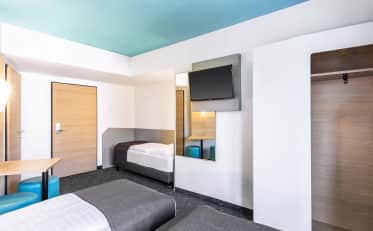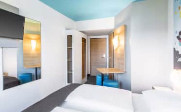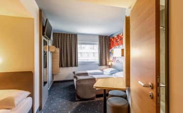 Unsere Unterkünfte in München verfügen über folgende moderne Zimmerkategorien: Doppelzimmer mit französischem Bett für ein oder zwei Personen, Zwei- und Dreibettzimmer, sowie Familienzimmer oder Barrierefreie Zimmer. Unsere Gäste können unser WLAN, während deines Aufenthaltes kostenlos nutzen. Durch die zentrale Lage unserer Unterkünfte, sind sie ideal für Städtereisen geeignet. Auch international Reisende sind mit einer Übernachtung, durch die Nähe zum Münchener Flughafen gut bei uns aufgehoben. Zur Ausstattung aller unserer Zimmer gehören schallisolierte Fenster, Schreibtisch, Garderobenschrank und Flachbildfernseher. Die Badezimmer sind mit Dusche, WC, Föhn und Waschbecken ausgestattet. Ein weiteres Angebot ist, dass du gegen einen kleinen Aufpreis dein Haustier gerne mitbringen darfst.