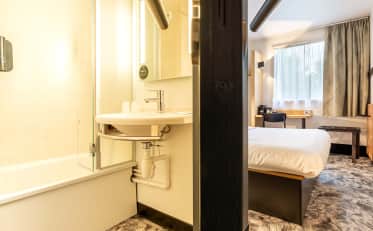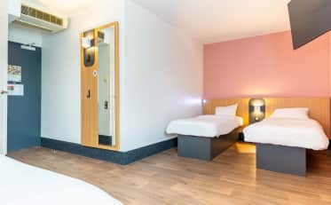 Unser B&B Hotel Nantes Aéroport liegt in der Nähe des Flughafens Nantes Atlantique, der Autobahn A83 und der Bundesstraße N844 - perfekt! Und ein Flughafen-Shuttle fährt alle 20 Minuten ins Zentrum von Nantes. Wie immer bei unseren B&B-Hotels bieten Ihnen unsere Zimmer jeden Komfort: Flachbildfernseher, unbegrenzter und kostenloser WLAN-Zugang, XXL-Dusche.... Es ist alles da!