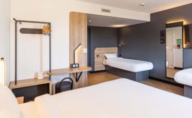 Sie suchen ein Hotel in unmittelbarer Nähe des Flughafens Rennes Bretagne? Unser B&B HOTEL Rennes Parc Expo Aéroport liegt nur eine Viertelstunde Fahrzeit vom Stadtzentrum entfernt und ist die richtige Unterkunft für Sie! Egal, ob Sie geschäftlich oder im Urlaub unterwegs sind, unser Hotel ist bereit, Sie zu einem erschwinglichen Preis zu beherbergen.