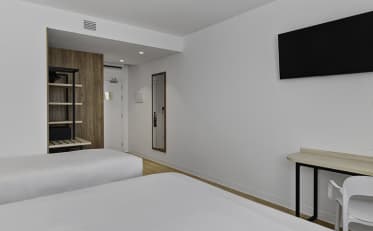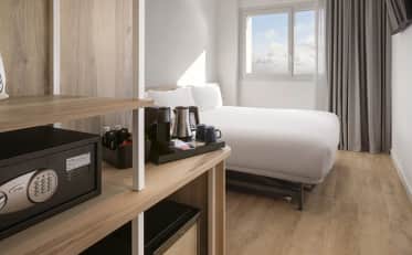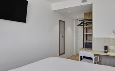 B&B HOTELS offers affordable hotel deals in Madrid, both in the Madrid city centre and in the surrounding areas, including hotels near Atocha train station and Barajas airport. Our range of affordable hotels in Madrid is very extensive and includes all types of rooms. Our guests enjoy excellent facilities at very affordable prices, including free Wi-Fi, parking, air conditioning and breakfast. If you are looking for affordable hotels in Madrid, do not hesitate to book your room with B&B HOTELS. Whatever your budget, at B&B HOTELS you will always find an excellent offer that suits your pocket and needs.