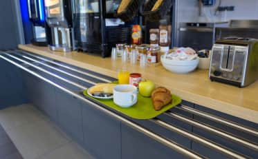 At B&B HOTELS, all our rooms are equipped with a private bathroom, quality bedding, free and unlimited Wi-Fi, and a flat-screen TV, so you feel at home. Plus, there's an all-you-can-eat breakfast buffet with everything you need to start the day right: a toast bar, hot drinks, and fruit juices! At B&B HOTELS, we also welcome your pet for an additional charge!