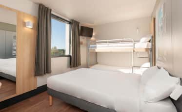 For your stay in Pau, we offer you two ideally located establishments to meet all your needs. The B&B HOTEL Pau Zénith is perfect if you are attending an event, while the B&B HOTEL Pau Lescar places you close to business areas and the historic centre of Lescar. In each of our hotels, you are guaranteed to find a comfortable and modern room. We guarantee a quality experience with bedding designed for your rest, a private shower, a television, and adjustable air conditioning. Our free and unlimited high-speed wifi connection allows you to stay connected, whether to finalize a professional file or share your holiday photos. Every morning, an all-you-can-eat, sweet and savoury buffet breakfast awaits you to start the day right. Our establishments also have private and free parking to facilitate your vehicle storage. Booking your overnight stay at B&B HOTELS in Pau is the promise of economical accommodation without any compromise on the quality of services and comfort.