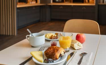 This is why at B&B HOTELS, we offer a complete breakfast balanced for adults and children. The little ones will enjoy a hot chocolate, a yogurt, Nutella toast, cereals, fruit juice... The older ones with an all-you-can-eat buffet of local and seasonal sweet and savory products. All at a low price! Note: our restaurant rooms have high chairs for your children on request (subject to availability).