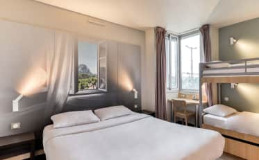 At B&B HOTELS in Montpellier, we offer family rooms for 3 or 4 people. Your whole tribe can thus stay and sleep in the same room. On request, we install a crib in the room for children under 3 years old.