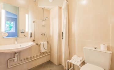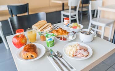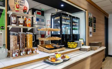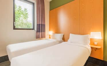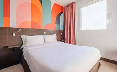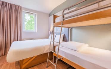 Modern and spacious, our family rooms can accommodate up to 4 people, ideal for a pleasant and stress-free night, just like at home... Unlimited Wi-Fi, television with a variety of channel packages, all-you-can-eat buffet breakfast at a budget-friendly price: take advantage of all B&B HOTELS services and simplify your life! If you are traveling with toddlers, we provide a baby cot at no extra cost if you request it at reception.