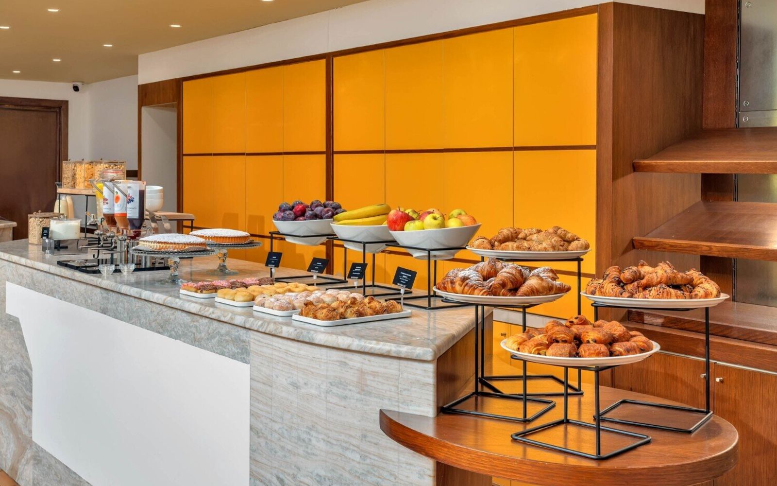 In order not to give up the pleasure of a sweet awakening, every morning in the breakfast room you can enjoy a rich, varied and delicious buffet with high quality products. Breakfast includes numerous options for sweet and savoury lovers such as croissants, bread, jams and rusks, doughnuts, cakes, muffins, cereals, yoghurt, scrambled eggs, frankfurters, cheese, soft drinks, coffee and much more...also with organic and gluten free options!
