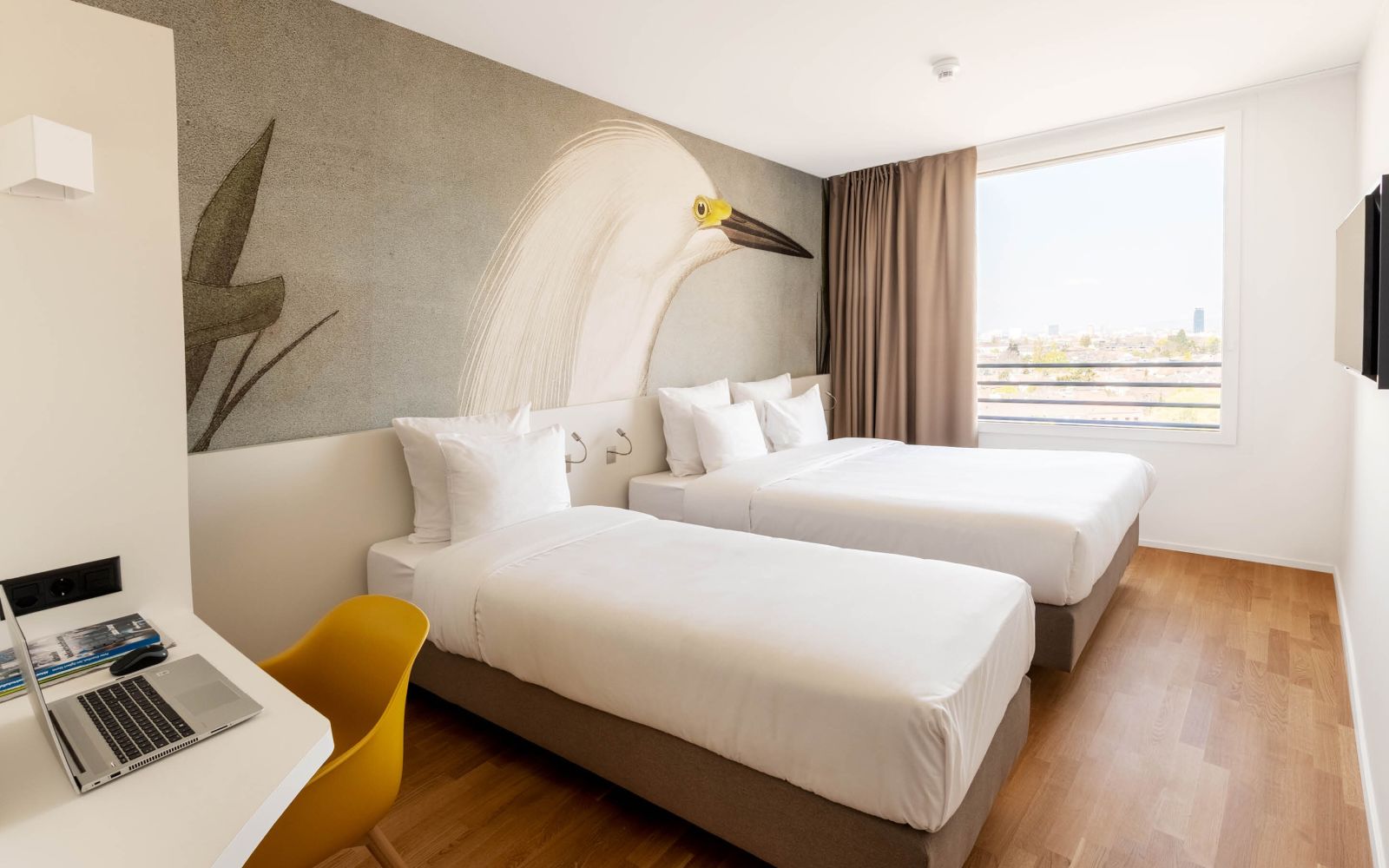 Hôtel bien situé, pas trop loin du centre ville, facilement accessible par le tram. Dommage que le parking ne soit pas équipé de bornes de recharge. Petit-déjeuner copieux et varié. Hôtel calme malgré autoroute et trains à proximité. Vue panoramique sur l'agglomération de Bâle