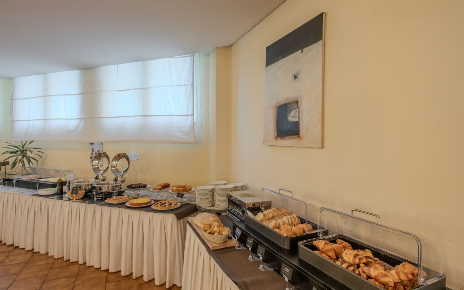 In order not to give up the pleasure of a sweet awakening, every morning in the breakfast room you can enjoy a rich, varied and delicious buffet with high quality products. Breakfast includes numerous options for sweet and savoury lovers such as croissants, bread, jams and rusks, doughnuts, cakes, muffins, cereals, yoghurt, scrambled eggs, frankfurters, cheese, soft drinks, coffee and much more...also with organic and gluten free options!