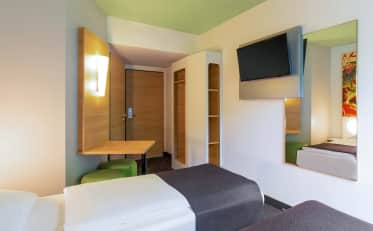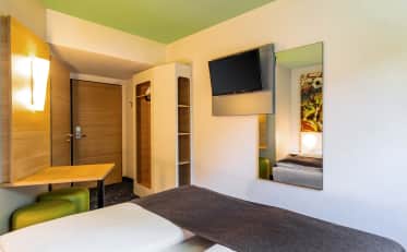 En las inmediaciones de Signal-Iduna-Park, el estadio del BVB Dortmund, tienes la oportunidad de alojarte barato en tu visita a la ciudad o al estadio. El B&B Hotel Dortmund-Messe está a sólo unos 6 minutos a pie del estadio y te ofrece, si llegas en coche, un aparcamiento gratuito (sujeto a disponibilidad). Gracias a las modernas instalaciones de nuestras habitaciones y al desayuno bufé que se puede reservar, nada se interpone a tu llegada. El acceso wifi gratuito así como el aire acondicionado, forman parte de nuestro equipamiento estándar.
