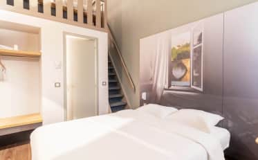 B&B HOTELS es sinónimo de bienvenida amistosa y personalizada, y de acceso ilimitado a Internet wifi de alta velocidad. ¿Y las habitaciones? B&B HOTELS ofrece habitaciones modernas con todos los servicios y equipamiento necesarios para disfrutar de una comodidad óptima: climatización, colchones de calidad, televisión con pantalla plana, sistema de insonorización para garantizar un sueño reparador, y baño funcional con lavabo, ducha e inodoro.