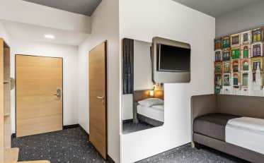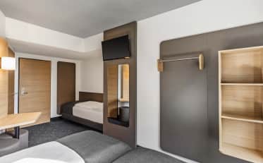 Nuestro B&B HOTEL Lübeck-Hbf te ofrece un total de 96 habitaciones modernas y funcionales para no fumadores, todas ellas diseñadas para garantizarte un sueño reparador. Tenemos la categoría de habitación adecuada para cada necesidad, para que viajeros individuales, parejas y familias se sientan igualmente a gusto: ya sean acogedoras habitaciones con cama francesa, cómodas habitaciones dobles, amplias habitaciones triples o prácticas habitaciones familiares con literas, tu refugio ideal te espera.