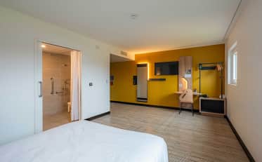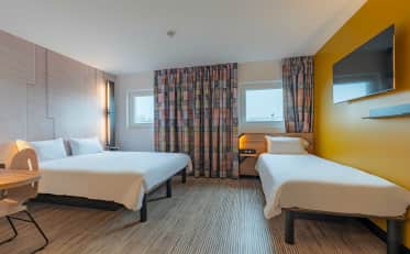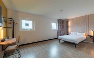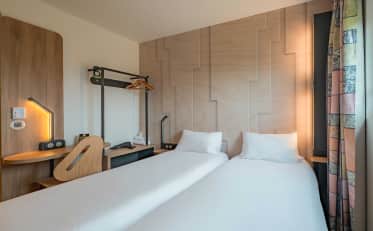 Nuestras 97 habitaciones bien equipadas están diseñadas para ofrecerle el máximo confort. Ya sea que viaje solo, en pareja o con su familia, tenemos habitaciones adaptadas a sus necesidades. Encontrará un baño privado, un televisor de pantalla plana y conexión Wi-Fi gratuita.