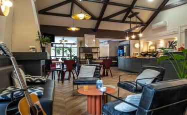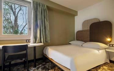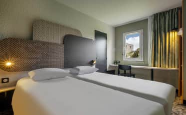 Nuestro B&B HOTEL Niort Sud Venise Verte, situado al sur de Niort y cerca de las principales carreteras, te da la bienvenida las 24 horas del día en una de sus 68 habitaciones. Tanto si viajas en solitario como en familia, nuestras habitaciones totalmente equipadas te encantarán. ¿Viajas en coche? Nuestro hotel dispone de aparcamiento privado gratuito. También hay un bar que ofrece diversas comidas en el recinto (pequeños bocados, pizzas, etc.). No dudes más y reserva hoy mismo tu hotel en el corazón de la ciudad.