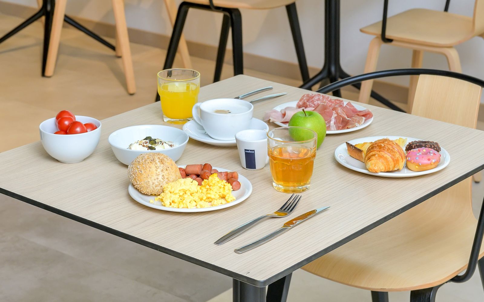 Para no renunciar al placer de un dulce despertar, todas las mañanas en la sala de desayunos se puede disfrutar de un rico, variado y delicioso buffet con productos de alta calidad. El desayuno incluye numerosas opciones para los amantes de lo dulce y lo salado, como croissants, pan, mermeladas y bizcochos, donuts, pasteles, magdalenas, cereales, yogur, huevos revueltos, salchichas, queso, refrescos, café y mucho más... ¡también con opciones ecológicas y sin gluten!
