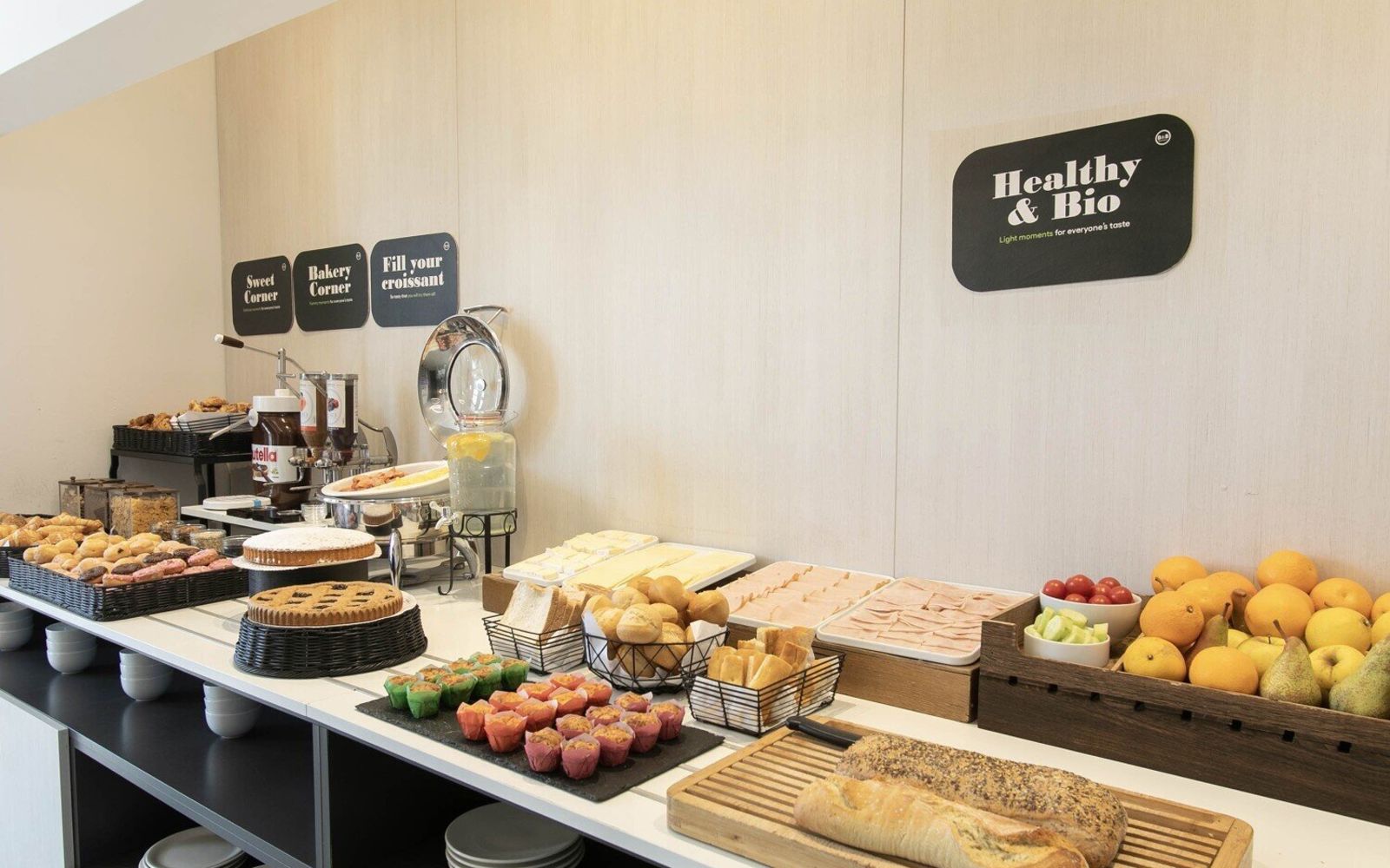 Para no renunciar al placer de un dulce despertar, todas las mañanas en la sala de desayunos se puede disfrutar de un rico, variado y delicioso buffet con productos de alta calidad. El desayuno incluye numerosas opciones para los amantes de lo dulce y lo salado, como croissants, pan, mermeladas y bizcochos, donuts, pasteles, magdalenas, cereales, yogur, huevos revueltos, salchichas, queso, refrescos, café y mucho más... ¡también con opciones ecológicas y sin gluten!