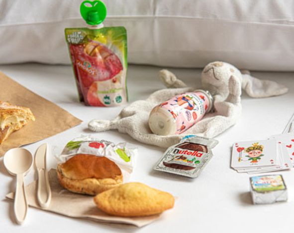 Esta fórmula de «desayuno en el hotel» también incluye una botella de agua y una bebida caliente, como café, café con leche o té.