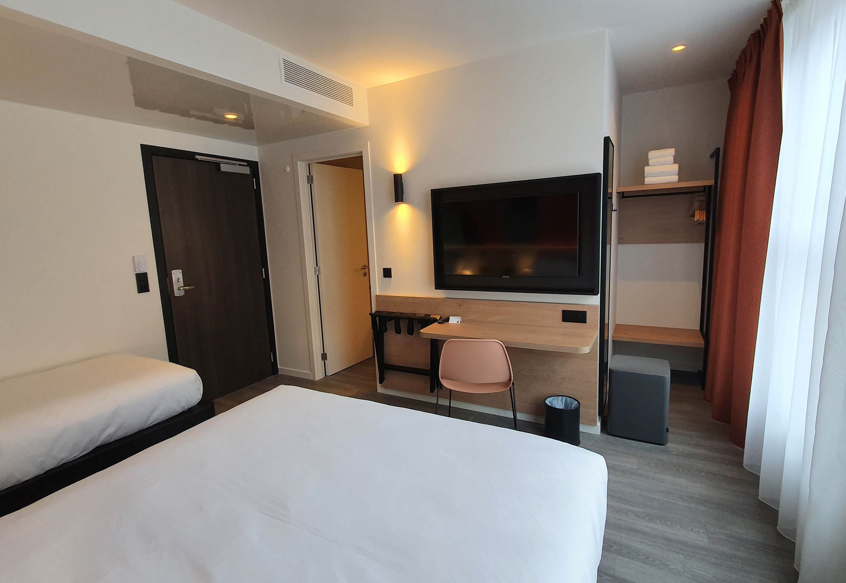 een proper hotel prijs / kwaliteit verhouding. de kamers zijn klein maar wel zeer proper en alles wat je nodig hebt om een nacht te verblijven is aanwezig. het ontbijt is te duur voor wat het is. voor de rest alles ok