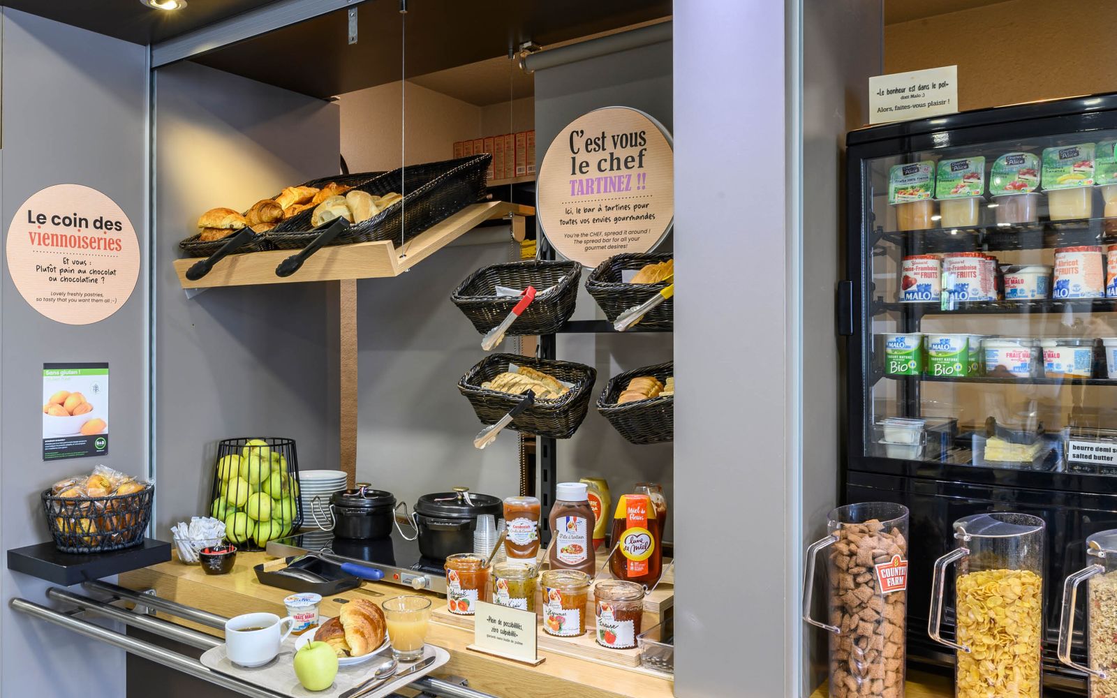 Profitez d’un petit-déjeuner buffet sucré-salé à volonté élaboré avec des fournisseurs français engagés. Dégustez des croissants et pains au chocolat, céréales, différents pains et biscottes à tartiner, de délicieuses confitures et de pâte à tartiner Lucien Georgelin , de miel Lune de miel ou de caramel, compotes Charles & Alice , yaourts Malo …sans oublier des fruits frais, un jus orange et pomme douceur, des œufs et du fromage, du bacon sans conservateurs ! Le tout accompagné d’une boisson chaude au choix: thé Baronny's, café Coïc et chocolat.