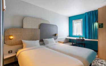 Le B&B HOTEL de Blois Sud, situé dans un quartier paisible, permet un accès rapide aux sites naturels et culturels du Loir-et-Cher. Fonctionnelles et chaleureuses, ses chambres disposent de tout le nécessaire : climatisation, télévision, salle de bain privative, wifi... La réservation est simple, en ligne ou sur place, et l’accueil toujours soigné. Une adresse idéale pour rayonner dans la région tout en profitant d’un cadre calme et accueillant.