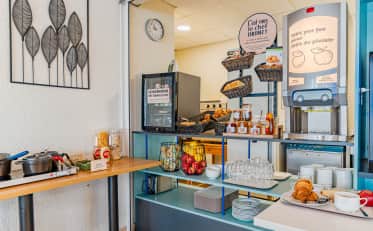 Non loin de la sortie d’autoroute A10 « Châtellerault Nord », vous accéderez facilement dans notre B&B HOTEL à Châtellerault. Vous arrivez tardivement à l’hôtel ? Le distributeur de chambre 24h/24 s’occupe de votre réservation pour que vous passiez une bonne nuit dans l’établissement. Vous pourrez ainsi bénéficiez d’une chambre avec une connexion Wifi haut débit, illimitée et gratuite, une salle de bain privative, des chambres climatisées et une literie d’une grande qualité. Pour prendre des forces avant de commencer votre journée, prenez un petit déjeuner copieux dans notre hôtel : un buffet à volonté sucré et salé vous attend.