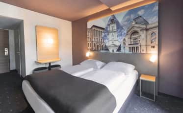 Au cœur de la charmante ville de Gera, le B&B HOTEL Gera vous propose ses chambres confortables et douillettes. Que vous soyez en voyage d'affaires ou que vous souhaitiez découvrir la beauté de Gera, notre hôtel constitue le point de départ idéal. Chaque chambre est meublée de façon moderne et possède tout le confort dont vous avez besoin pour un séjour agréable. Profitez d'une connexion Wi-Fi gratuite, de lits confortables et d'un petit-déjeuner complet pour bien commencer votre journée à Gera. Parce que l'hospitalité et le confort sont primordiaux, le B&B HOTEL Gera est votre deuxième chez-vous.