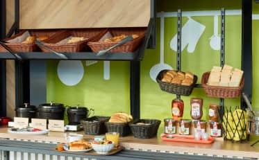 Le matin, rendez-vous dans la salle de petit déjeuner pour déguster un petit-déjeuner complet, composé de bons produits disponibles en buffet à volonté.