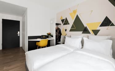 Des chambres types doubles ou familiales si vous voyagez à plusieurs, de la literie de très bonne qualité, un accueil 24h/24, un parking sécurisé, un bar ou encore un petit déjeuner à base de de produits frais : n’hésitez pas une minute de plus et réservez votre chambre dans notre hôtel classé 3 étoiles à Oftringen !