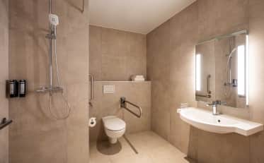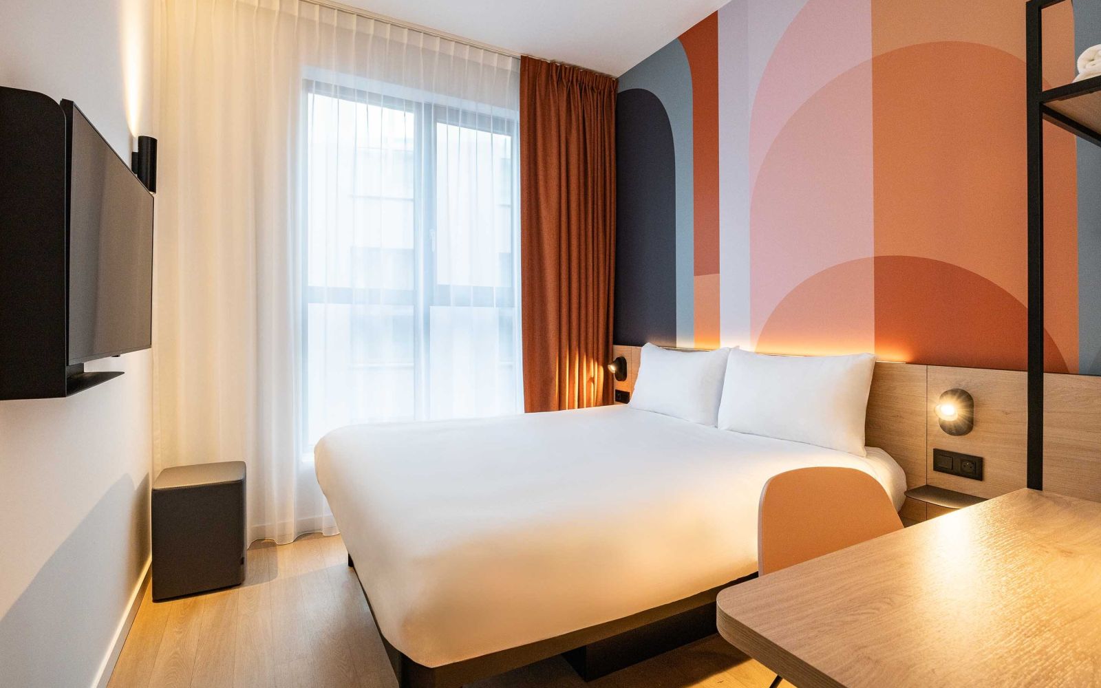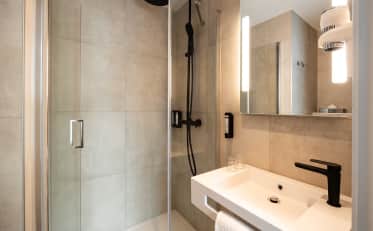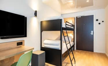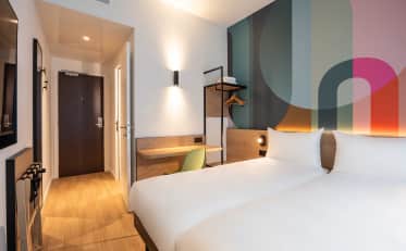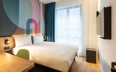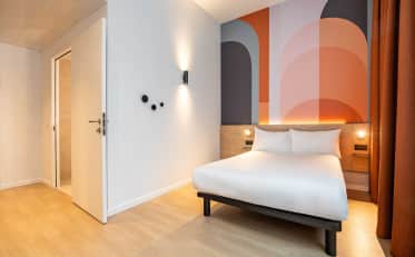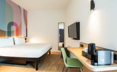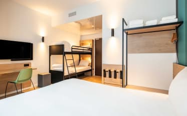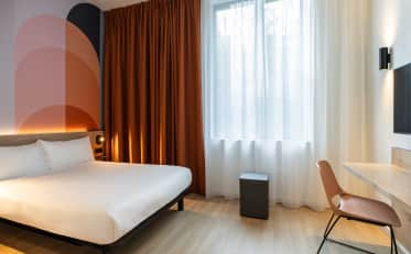 Tutte le nostre camere sono climatizzate, dispongono di connessione Wi-Fi gratuita e illimitata e di una televisione a schermo piatto. Troverete inoltre all'interno dell'hotel un bar, un servizio di deposito bagagli e piccole opzioni di ristorazione (vasetti e pizze).