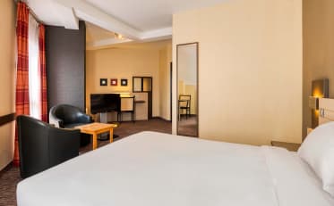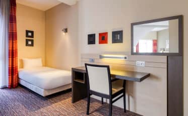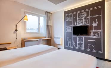 Presso B&B HOTELS beneficerai di tutti i servizi di cui hai bisogno per un piacevole soggiorno: camere confortevoli (singole, doppie, triple o familiari), connessione Wi-Fi gratuita e illimitata, biancheria da letto di qualità, bagno privato e televisione a schermo piatto. Qualcosa per farti sentire a casa! Non perderti la colazione completa a buffet à la carte, dolce e salato senza limiti quando ti alzi dal letto!