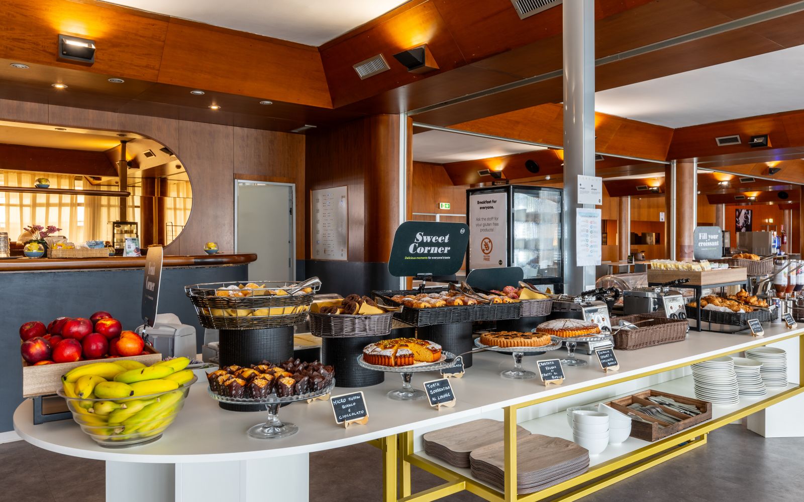 Per non rinunciare al piacere di un dolce risveglio, ogni mattina nella sala breakfast potrai godere di un buffet ricco, vario e delizioso con prodotti di alta qualità. La colazione comprende numerose opzioni per gli amanti del dolce e del salato come brioches, pane, marmellate e fette biscottate, ciambelle, torte, muffin, cereali, yogurt, uova strapazzate, wurstel, formaggio, bibite, caffè e molto altro...anche con opzioni bio e gluten free!
