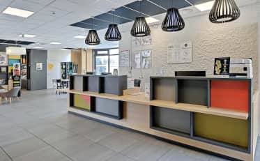 Escolha um hotel no centro da cidade, assim poderá aproveitar para descobrir a cidade durante um dia ou vários em função da duração da sua estadia no nosso Hotel B&B em Le Mans Centre! Situado a apenas alguns minutos da estação ferroviária, dos transportes públicos e do Palais des Congrès de Mans é o alojamento ideal para as suas deslocações de curta duração. Informamos que o nosso hotel tem bar!