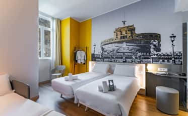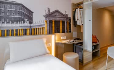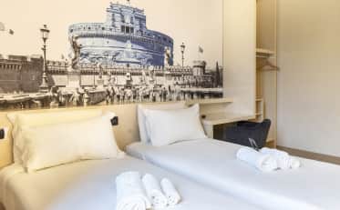 Está à procura com um hotel com uma excelente hospitalidade e um conceito smart no centro de Roma? O Hotel B&B Roma Trastevere está localizado em Trastevere, no bairro mais característico de Roma, a apenas alguns passos do Coliseu, do Circo Máximo, dos Fóruns Romanos, da Fontana di Trevi e da Piazza Navona. Para aqueles que procuram um hotel na zona norte, o Hotel B&B Roma Pietralata é a solução ideal. Bem ligado ao centro da cidade, graças à estação de metro Pietralata, a 10 minutos do hotel, fica perto da Reserva Natural Valle delle Aniene e a uma curta distância do Hospital Sandro Pertini. Na área sul do centro histórico, existe o Hotel B&B Roma Tuscolana San Giovanni, perto do metro, ponto de partida perfeito para visitar uma das cidades mais bonitas e ricas em história; enquanto no bairro histórico de San Lorenzo, existe o Hotel B&B San Lorenzo Termini, perto das estações ferroviárias Roma Termini e Roma Tiburtina, e a poucos passos da Universidade de Roma "La Sapienza" e do Policlinico Umberto I. Se está a sair do Aeroporto de Fiumicino, o Hotel B&B Roma Fiumicino é perfeito para si: confortável, funcional e bem ligado ao centro da capital! Em todos os Hotéis B&B, irá encontrar quartos confortáveis, mobilados com bom gosto, com casa de banho privativa em todos os quartos, de vários tipos e com o melhor conforto. Além disso, irá encontrar uma ligação Wi-Fi com velcidade de 200 MB, TV LCD e canais Sky gratuitos. O ar condicionado é regulável em todos os quartos, para ter sempre a temperatura que deseja. Entre os hotéis da cidade de Roma, os Hotéis B&B têm uma ótima localização para visitar Roma, estando sempre localizados perto de transportes públicos e com funcionários competentes na receção que estarão sempre prontos a dar conselhos aos hóspedes sobre o que visitar, ou a dar indicações sobre qual é o melhor restaurante para uma refeição romântica ou com amigos. Deseja descobrir mais pontos de interesse e atividades para fazer em Roma? Nos Hotéis B&B é muito simples: relaxe no seu quarto, ligue a Smart TV e navegue pelas secções dedicadas, onde pode descobrir os restaurantes da zona e tudo o que necessita para uma experiência única em Roma.