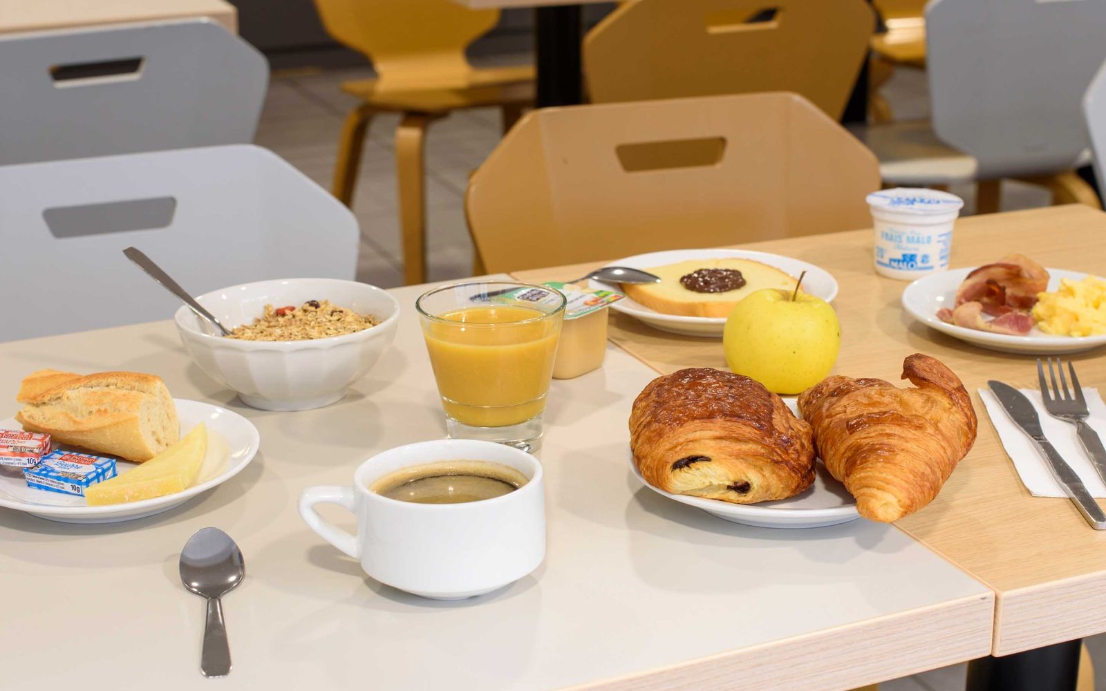 Para ser desfrutado: croissants, dores ao chocolate, pão e roscas espalhadas com deliciosas compotas, mel, creme ou caramelo, compotas, iogurtes...